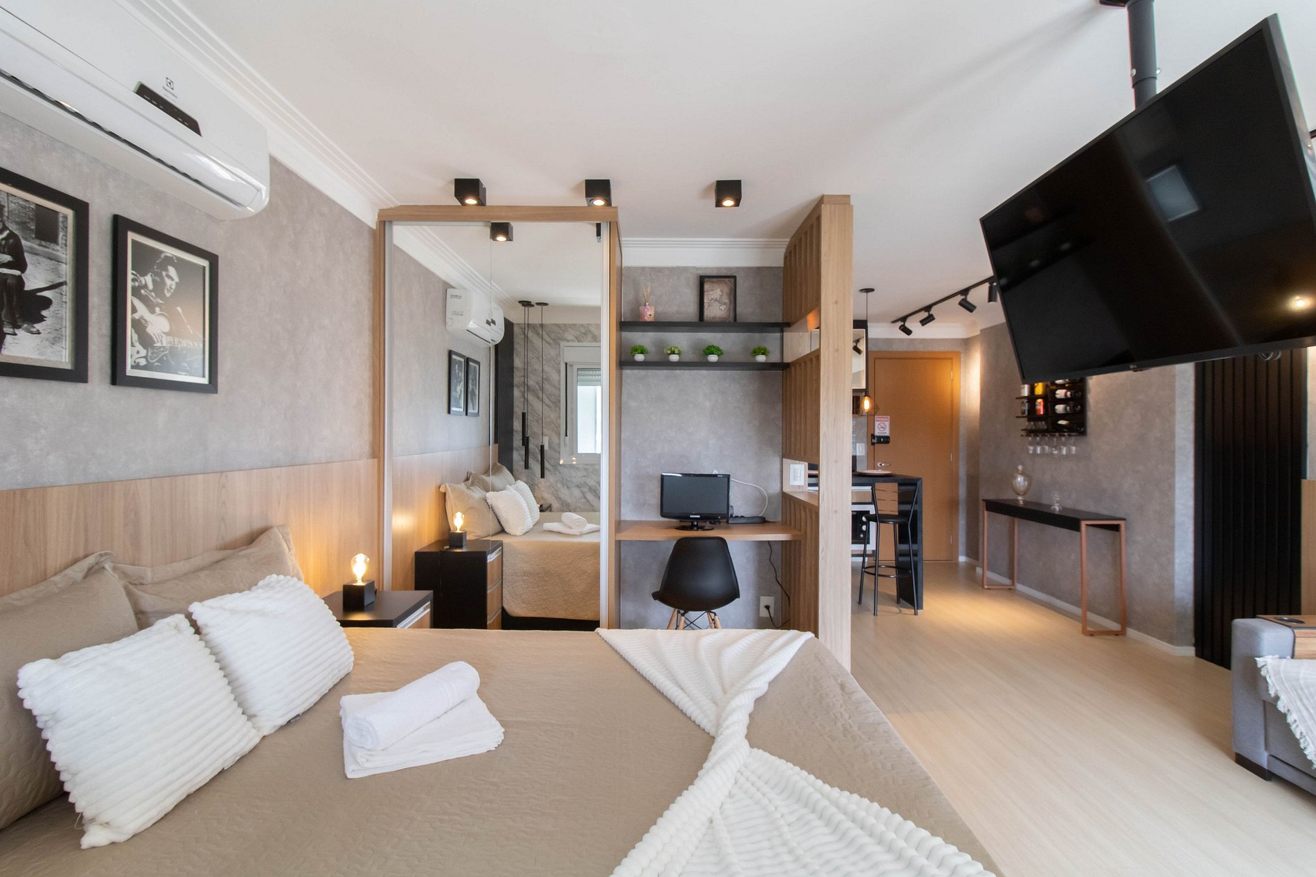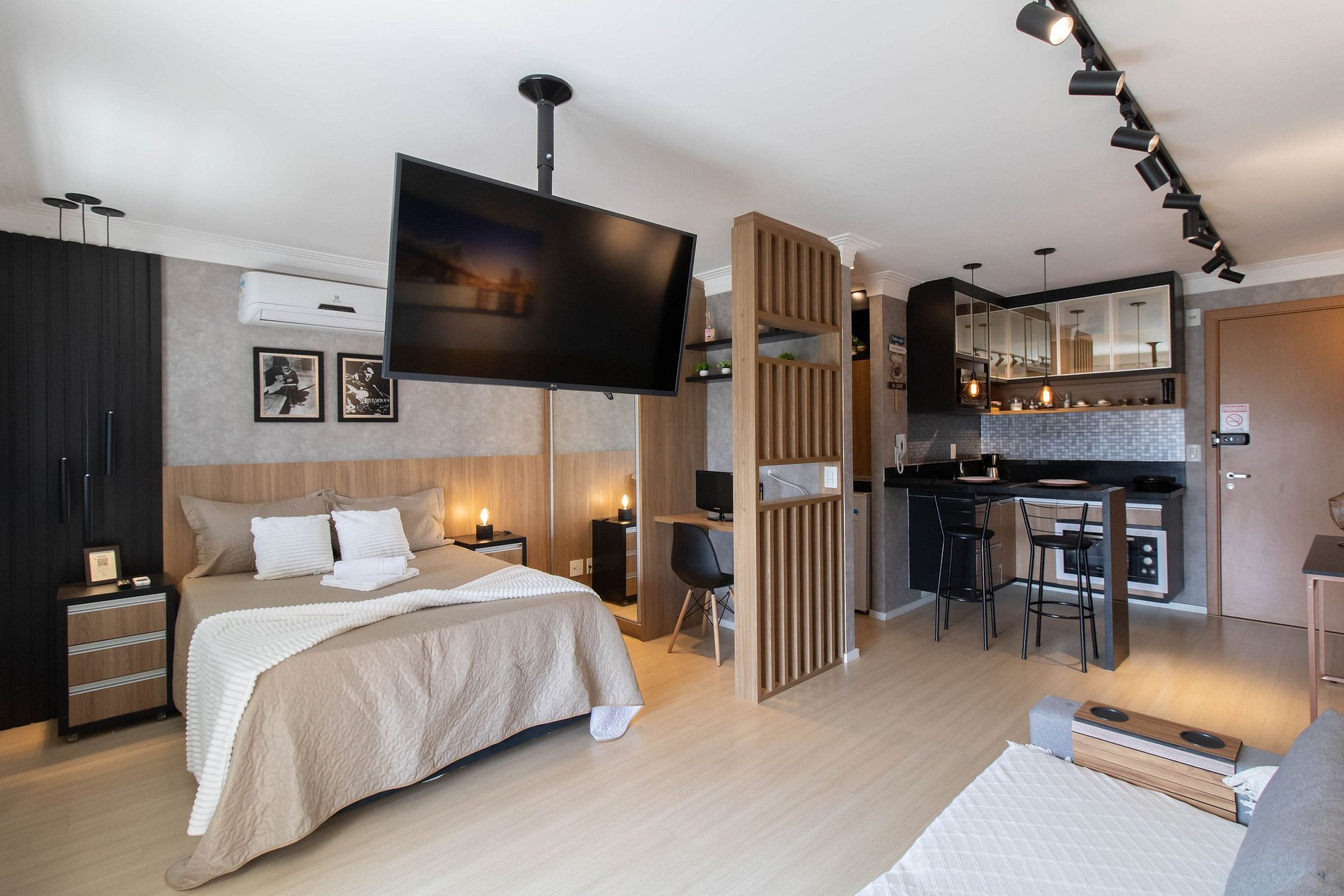 nosso studio perfeito, projetado para atender a todas as suas necessidades! Este studio oferece um ambiente acolhedor e funcional, ideal para quem busca conforto e praticidade durante a estadia.