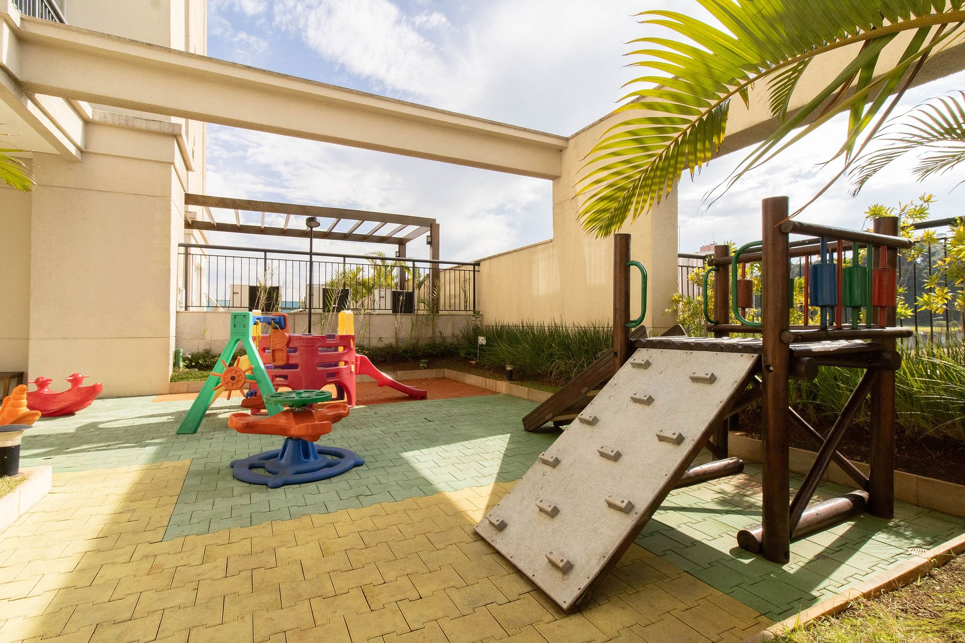 Praça central: Uma ampla área verde de mais de 5.000 metros, com bangalôs para relaxar e apreciar a natureza.